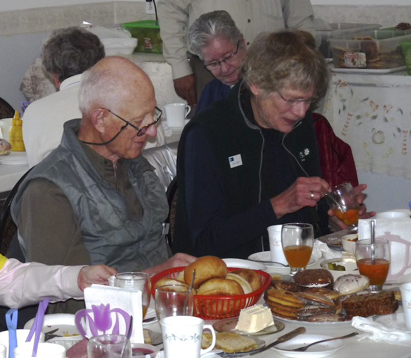 Caption: David and Joan enjoying the Mennonites' hearty sustenance.